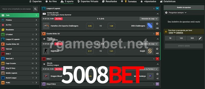 O 5008bet oferece uma grande seleção de opções de apostas em e-sports com probabilidades competitivas